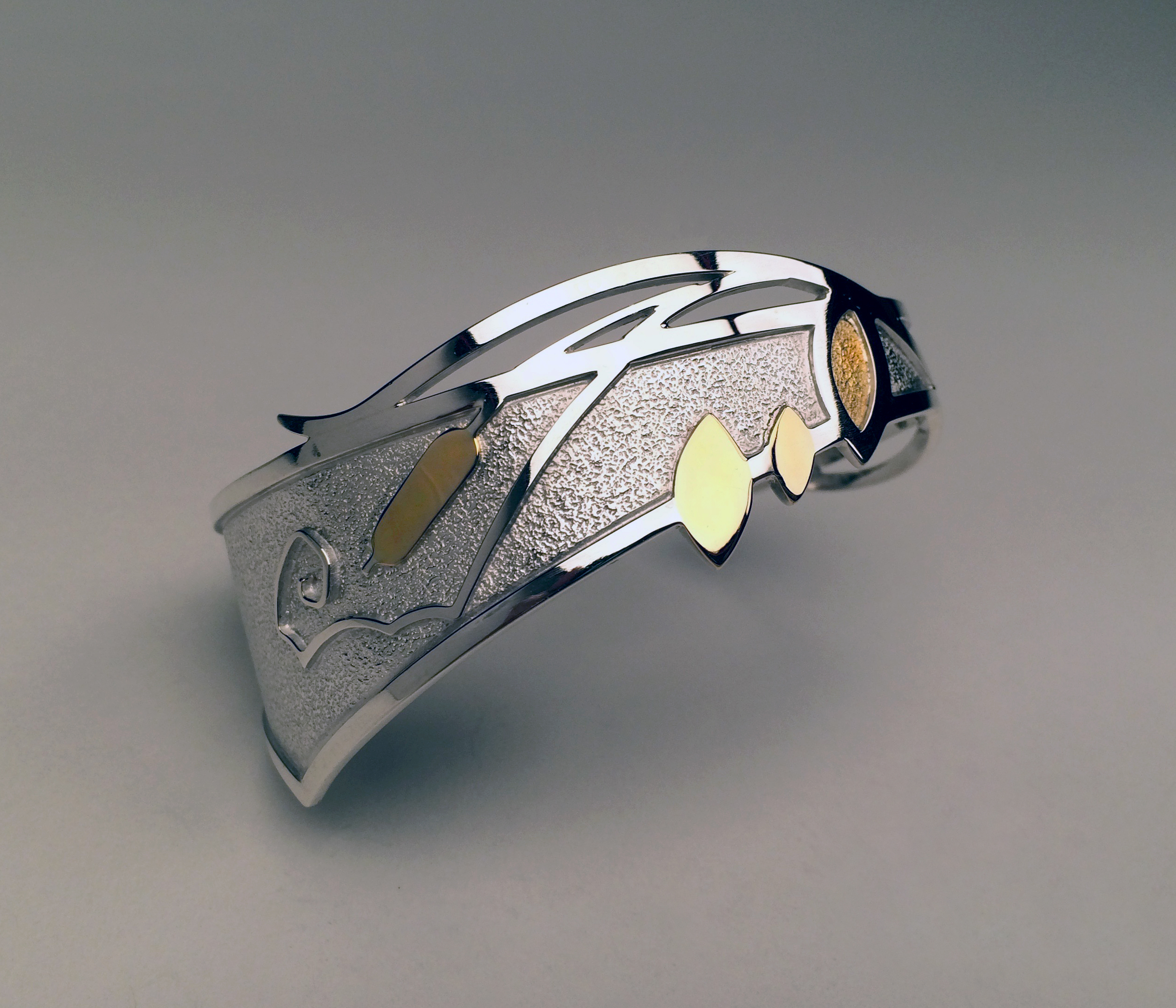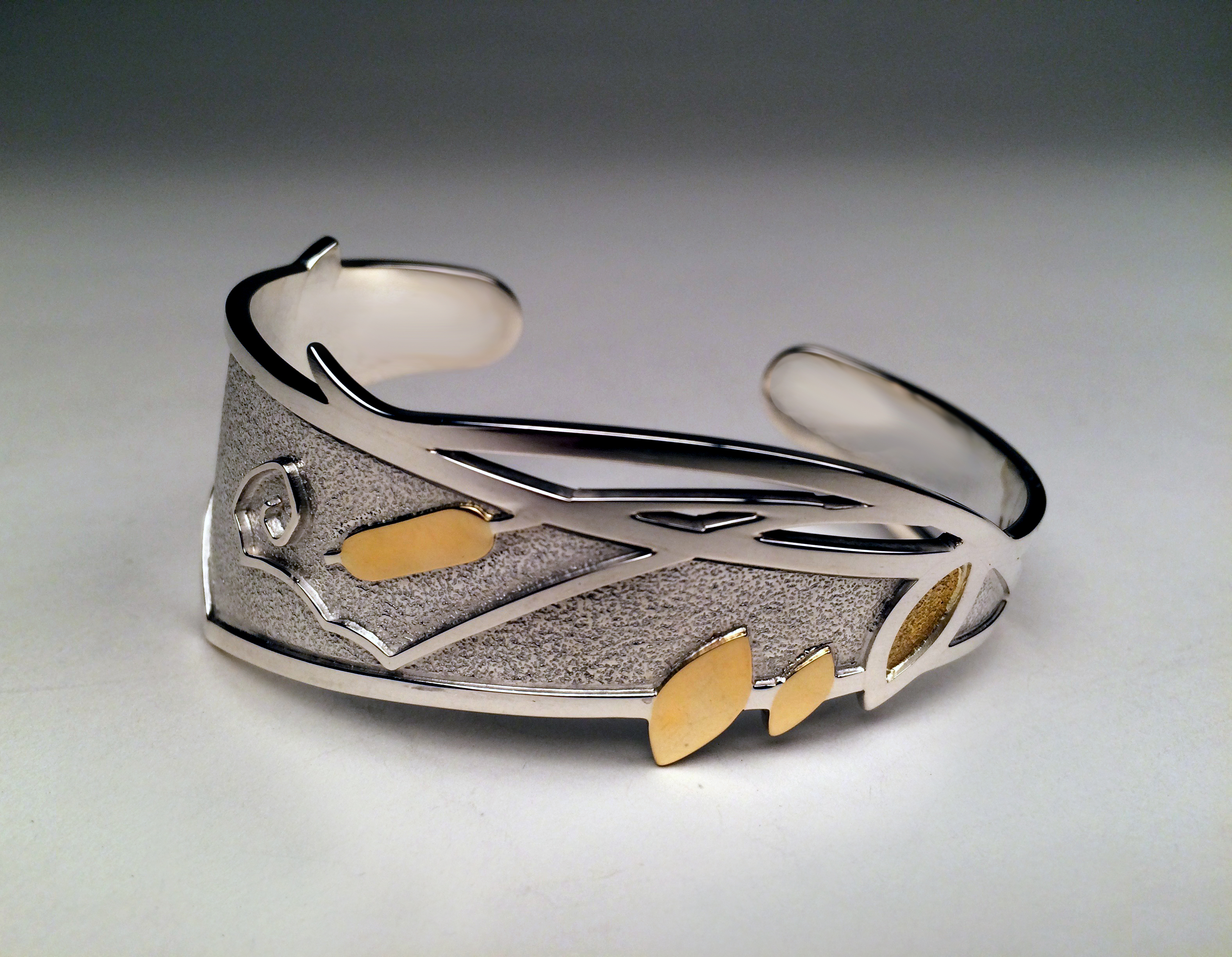 Cattail Cuff. Fine & sterling silver, 18k & 22k gold.