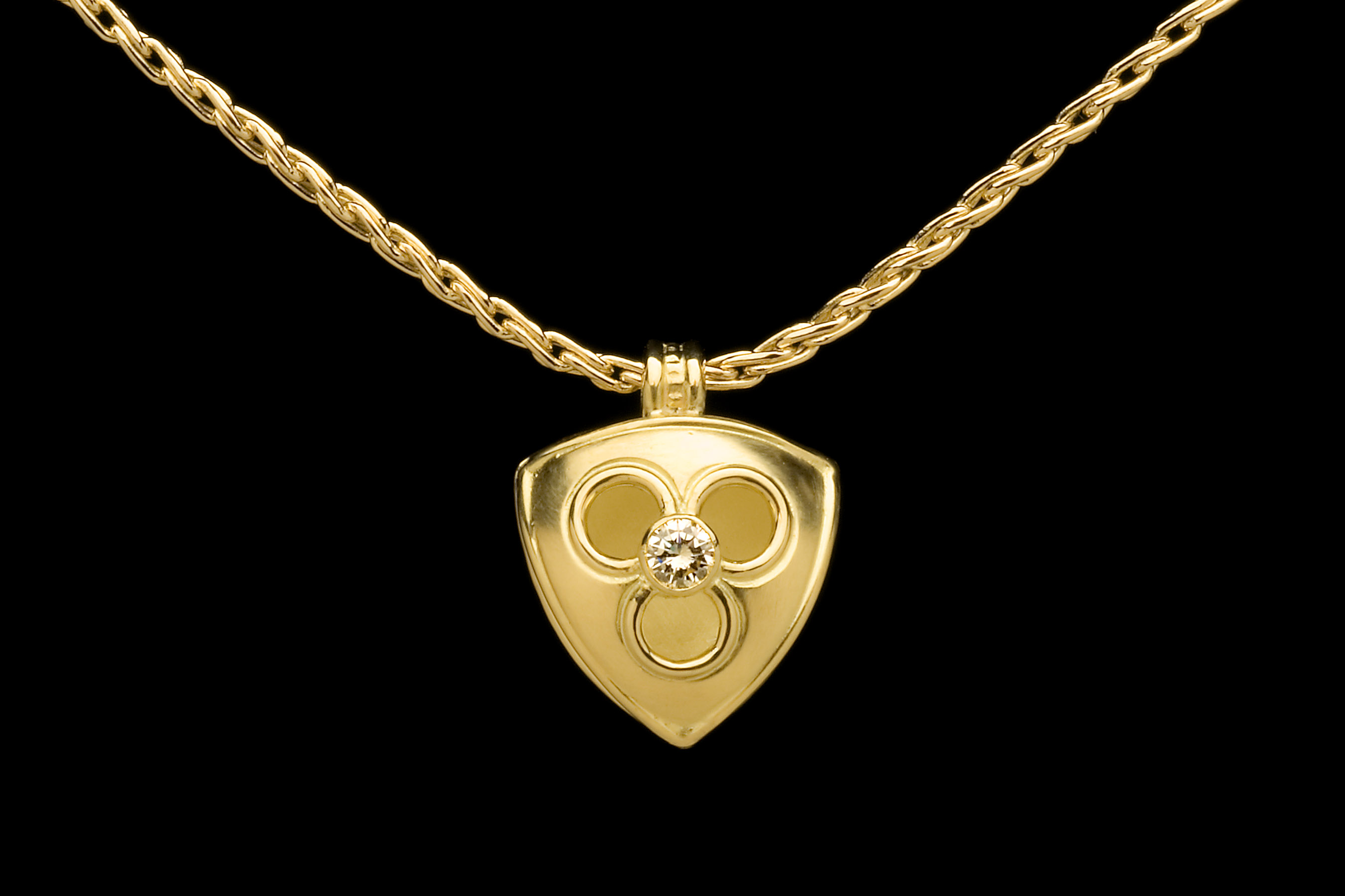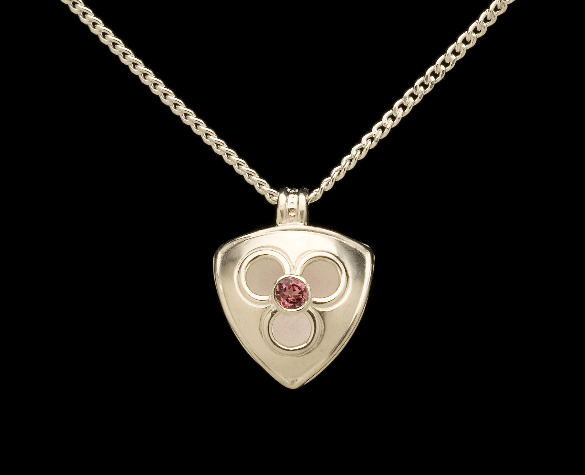 The simple 3 leafed shape of the trefoil often finds its way into my designs. I enjoy the symmetry of the shape and the juxtaposition of curvilinear elements inside a triangular framework. The design is reminiscent of the small, clover shaped windows seen in many gothic style structures. Similarly, this type of architectural detail reminds me of the Arthurian legends, therefore being the inspiration for the necklace's name.