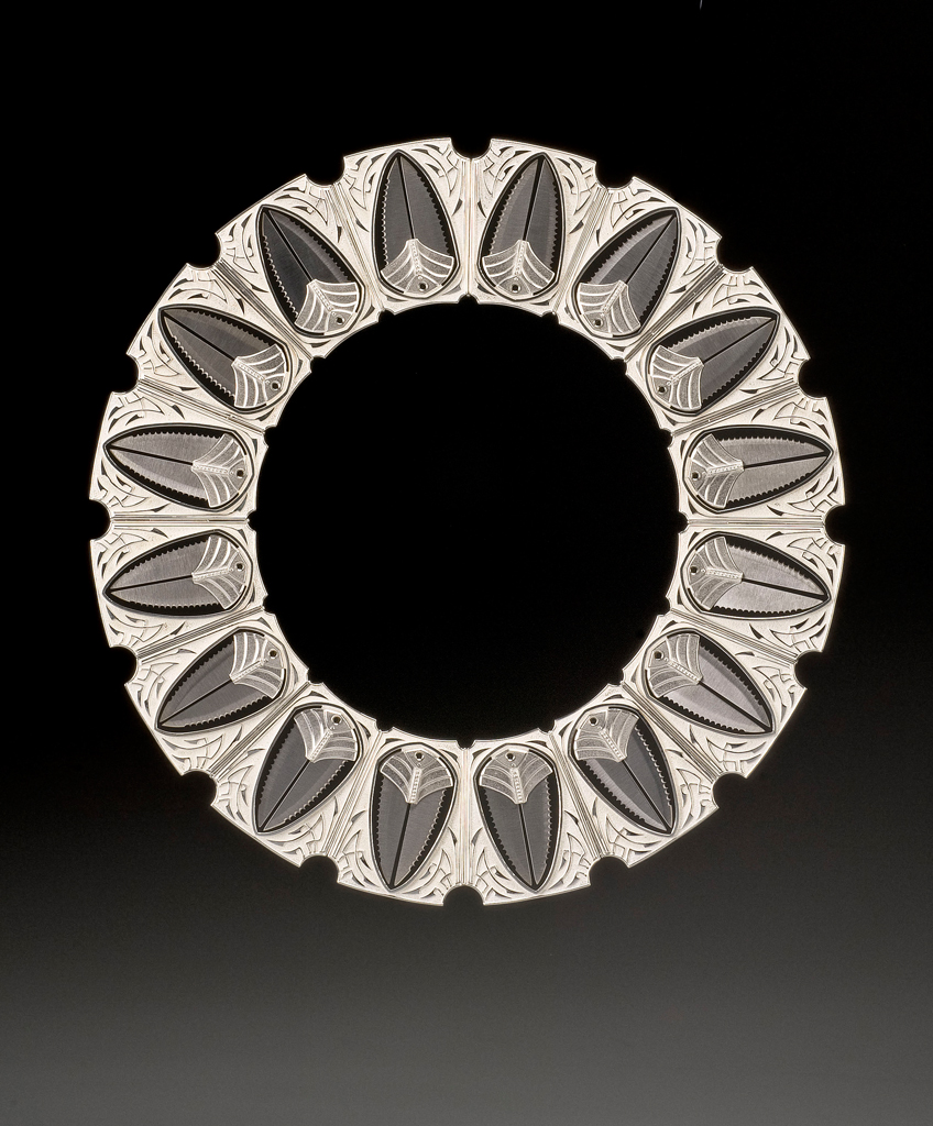 Elements of weaponry are incorporated into this culture's governmental attire, illustrating the importance placed on military prowess. The armored quality of the collar and its physical weight on the body symbolize the steadfast strength and composure demanded of the wearer.