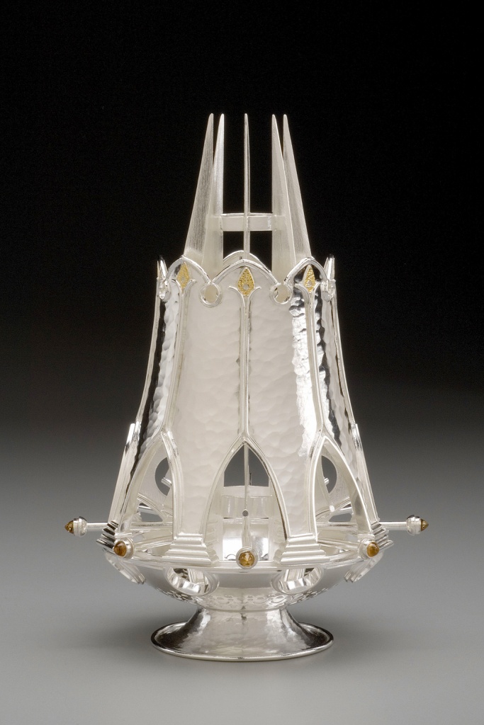 Versions of this eccentric utensil can be found on the tables of this culture's aristocracy. A stone-bearing fruit is placed underneath the removable, conical sheath. Then the lid, along with the fruit, is pressed down over the eight sets of blades, simultaneously slicing the fruit and leaving the pit cradled in the ring atop.