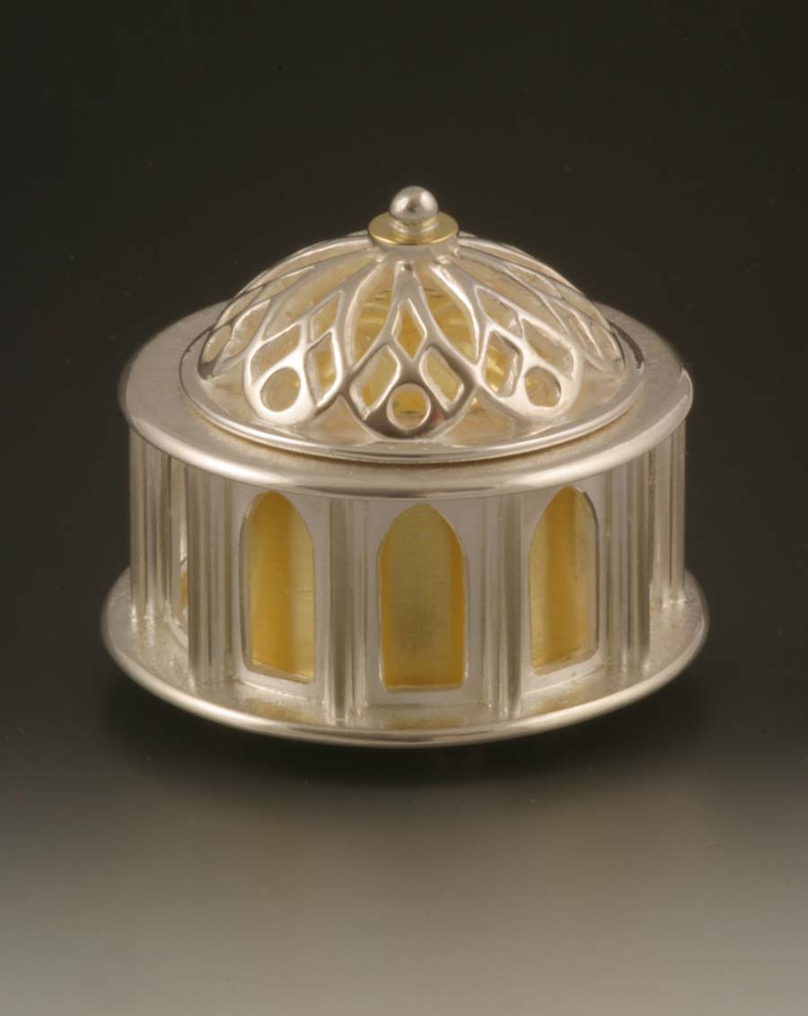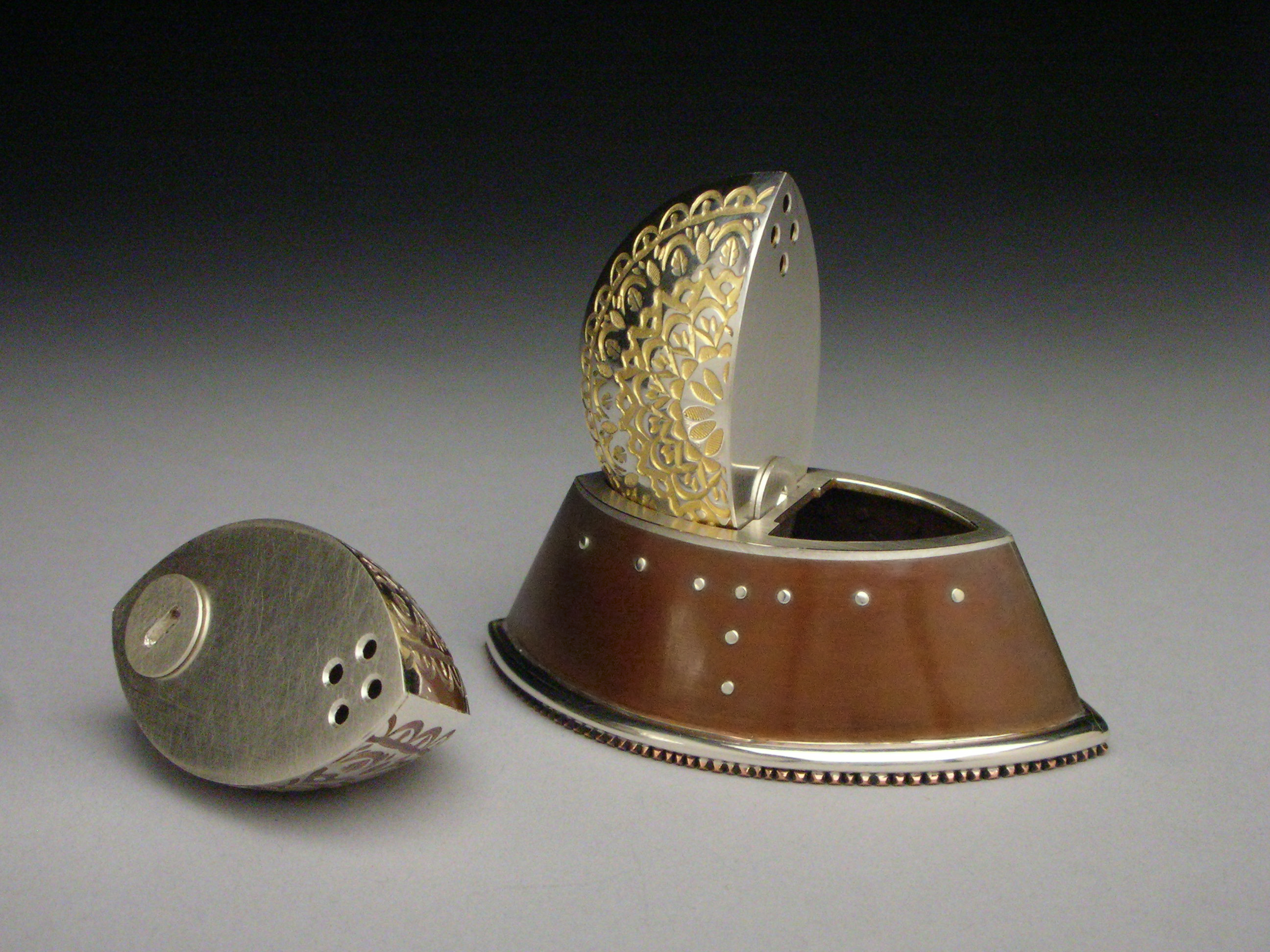Box for a wedding band. 22 karat gold and sterling silver.